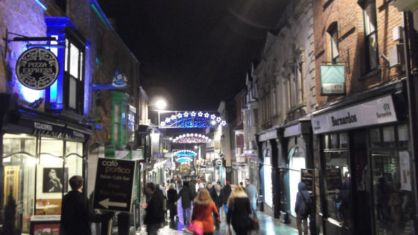 Night fell as we journeyed through the countryside, and we arrived at Lincoln train station to find it packed full of angry people, complaining about a cancelled train, and needing to find a bus. As we squeezed through this crowd, we were thankful to find ourselves outside the station.